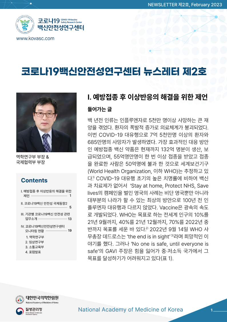I. 예방접종 후 이산반응의 해결을 위한 제언 ―――――――――― 1