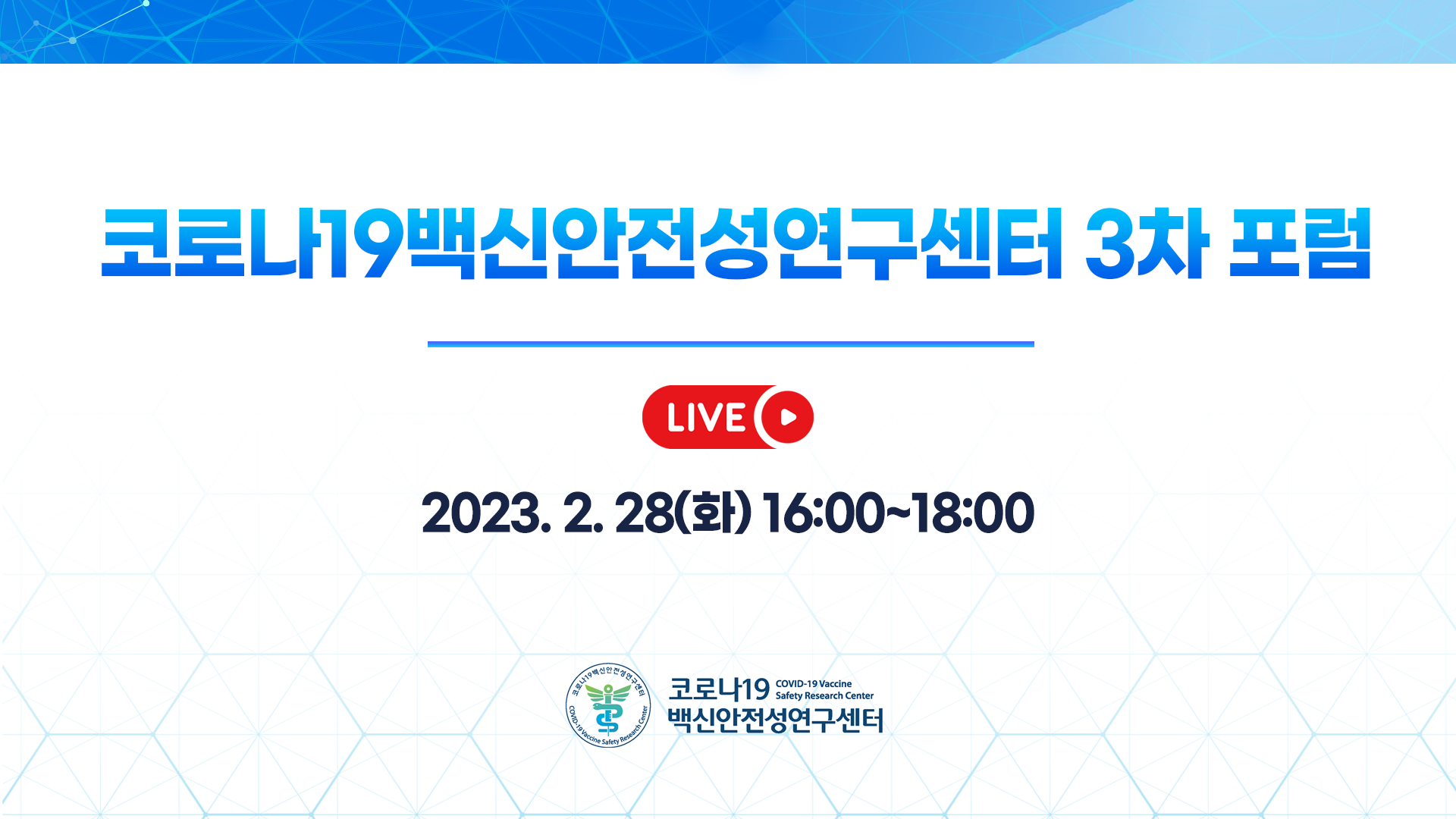 대한민국의학한림원 코로나19백신안전성연구센터는 코로나19 예방접종 후 이상반응의 과학적 인과성 평가를 목표로 지난 1차 포럼에서 코로나19백신 임상고찰을 통해 인과성 지식을 공유한 바 있습니다. 지난 1차, 2차 포럼에 이어 2023년 2월 28일 화요일에 3차 포럼을 개최합니다. 이번 포럼에서는 심부정맥혈전증(혈소판감소증이 없는), 대상포진, 다발성경화증에 대한 질환분석 발표 및 토론이 이루어질 예정입니다.